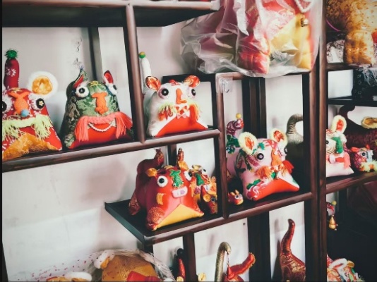 2025年7月15日,实践团的成员们来到青岛城阳河套布老虎传承人孙文娟老师的布艺作坊。初次来到这里,仿佛踏入了 “老虎的世界”:货架上,各式各样的布老虎或坐或卧,有的昂首挺胸,有的憨态可掬,五颜六色的彩色布料在布老虎身上和谐可爱,金线绣的纹路闪着细碎的光,靛蓝花边勾勒出灵动的虎纹,有大有小,小一些的老虎放在掌心还有些余量,大一些的老虎据老师说可以给小孩子骑着玩耍,桌上的架子还有不同样式的香囊流光溢彩,花朵样式的,小鱼样式的,这些精致的布艺作品背后是文化的传承与底蕴。 大家想把这份智慧记录下来,也让更多同龄人知道,非遗离我们并不遥远。