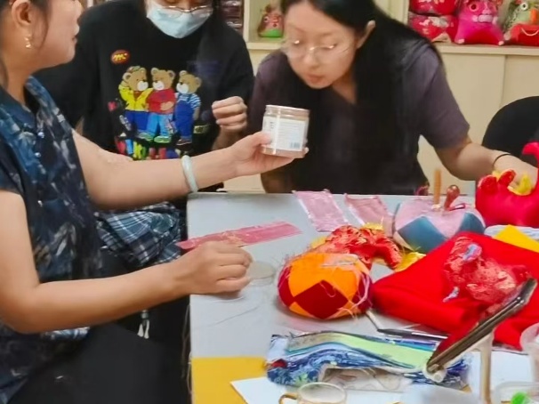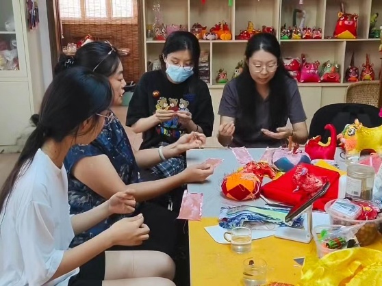 完成了体验制作的环节,大学生们开始与老师进行交谈,向老师询问和探索布老虎背后的故事。
